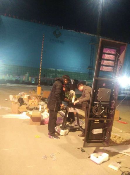 由于工地還在建設期,現場條件惡劣,現場幾個年輕人要徒手將不規則土坑掘成53cmx53cm的規格,再將重量為他們體重之和近2倍的兩根燈桿屹立起來。同時,還得臨時“客串”電工、技工,將燈桿內上千根線路組接無誤,正常點亮照明……