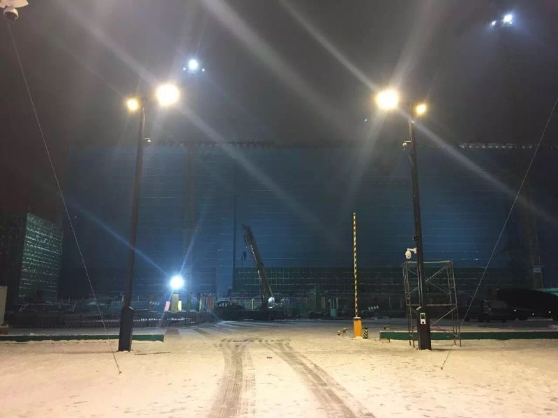 這可不簡單,先看看這燈桿的“身材”:渾身純鐵打造,擁有10米的“大長腿”,53cmx53cm的三百斤“大方腳”,頭頂還戴著近百斤的“禮帽”,更不用說身上那成百上千的線路“神經”……