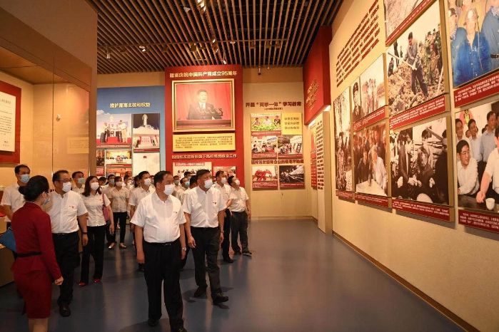 黨的歷史是最生動、最有說服力的教科書。沿著百年黨史脈絡,全體人員依次參觀了“建立中國共產(chǎn)黨奪取新民主主義革命偉大勝利”“成立中華人民共和國進行社會主義革命和建設”“實行改革開放開創(chuàng)和發(fā)展中國特色社會主義”“推進中國特色社會主義進入新時代全面建成小康社會開啟全面建設社會主義現(xiàn)代化國家新征程”等四大展區(qū)。珍貴的文物實物、翔實的檔案資料、生動的圖片視頻、逼真的復原景觀吸引著全體人員駐足凝視、重溫歷史