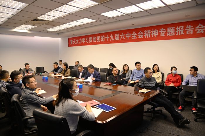 12月9日下午,普天太力黨委舉辦黨的十九屆六中全會精神專題報告會,北京市委黨校孫寧教授作專題輔導報告,黨委副書記鄒乾新主持會議并講話。