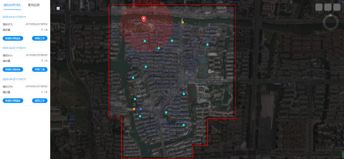 智慧水務(wù)云平臺(tái)可以通過先進(jìn)的漏損定位算法和DMA的夜間最小流量,能夠及時(shí)發(fā)現(xiàn)漏損并精準(zhǔn)提供漏損位置信息,自動(dòng)判斷、分析各DMA是否泄漏以及當(dāng)前泄漏水平,為制定檢漏方案提供依據(jù)。在出現(xiàn)停斷水或爆管等突發(fā)事件時(shí),通過智慧水務(wù)云平臺(tái)的漏損定位,幫助實(shí)現(xiàn)排查縮小范圍,減輕一線工作人員排查難度,減少居民停斷水時(shí)間。