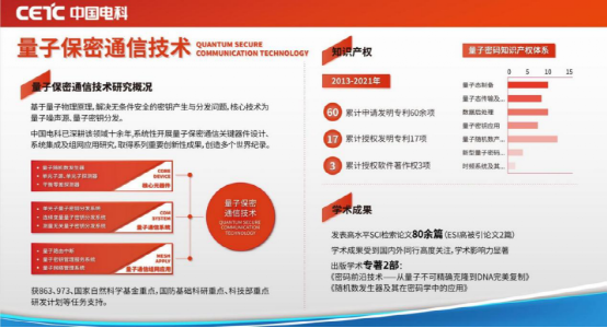 量子保密通信已創(chuàng)造多個(gè)世界紀(jì)錄,獲得獲863、973、國家自然科學(xué)基金重點(diǎn)、科技部重點(diǎn)研發(fā)計(jì)劃等30余項(xiàng)國家/省部級任務(wù)支持,自主突破了量子態(tài)制備、傳輸控制、探測、數(shù)據(jù)處理等關(guān)鍵技術(shù),申請發(fā)明專利60余項(xiàng),研制了性能指標(biāo)國際領(lǐng)先的CV-QKD系統(tǒng)(安全碼率≥7.04Mbps@25km;最遠(yuǎn)傳輸距離202.81km),研制了性能指標(biāo)國際先進(jìn)的高速小型化QRNG樣機(jī)(實(shí)時(shí)速率>7G bits/s;離線速率117G bits/s )和國內(nèi)首款量子熵源芯片。